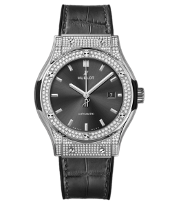 Hublot Classic Fusion 542.NX.7071.LR Titanium Grey Pave Diamonds 42mm Fullbox