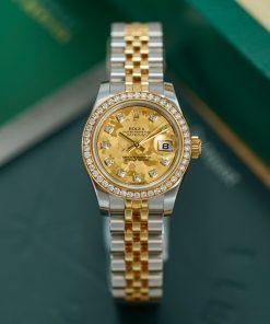 Rolex Datejust Lady 179383 Demi 18k Diamond Benzel Mặt Số Khảm Vàng Cọc Số Kim Cương Fullbox