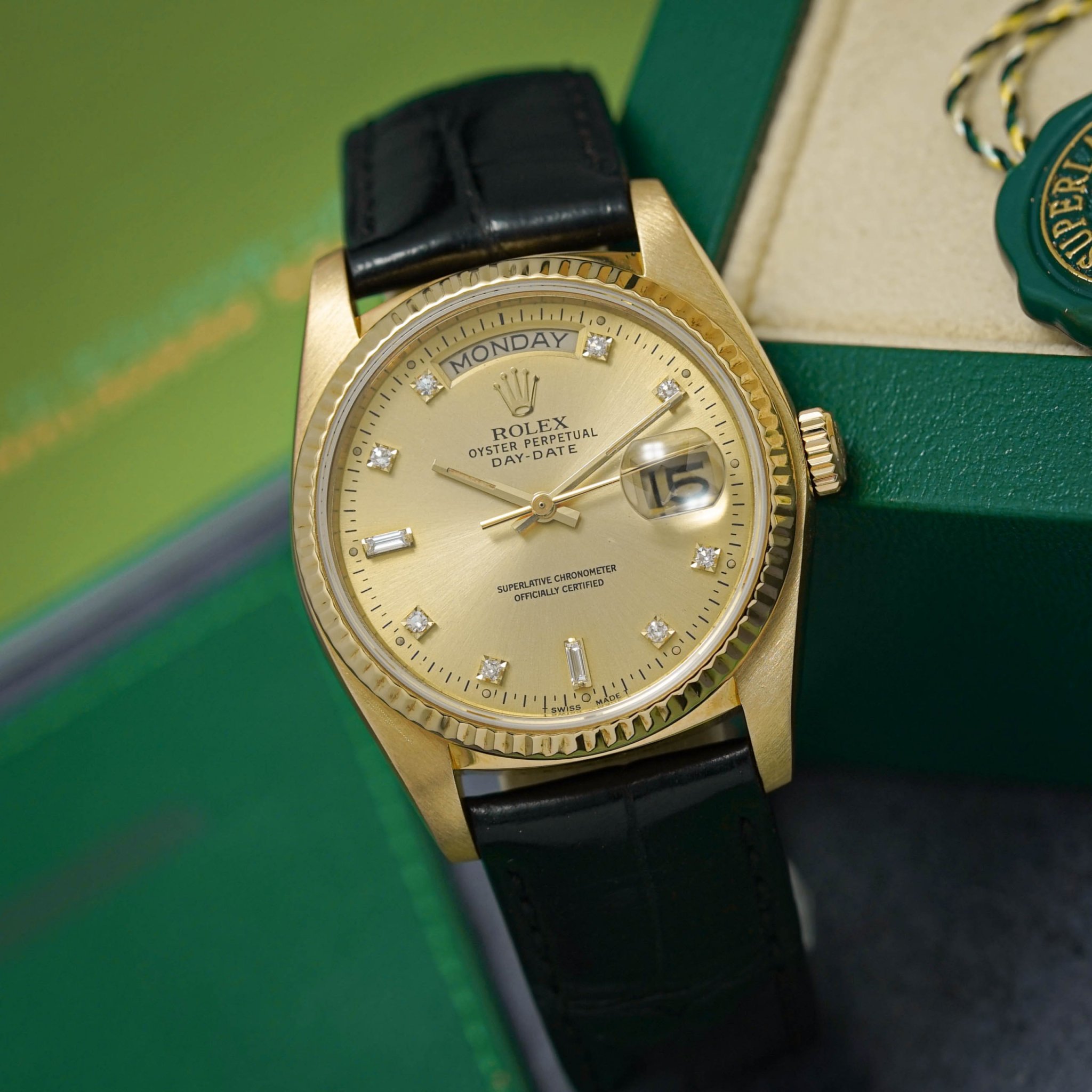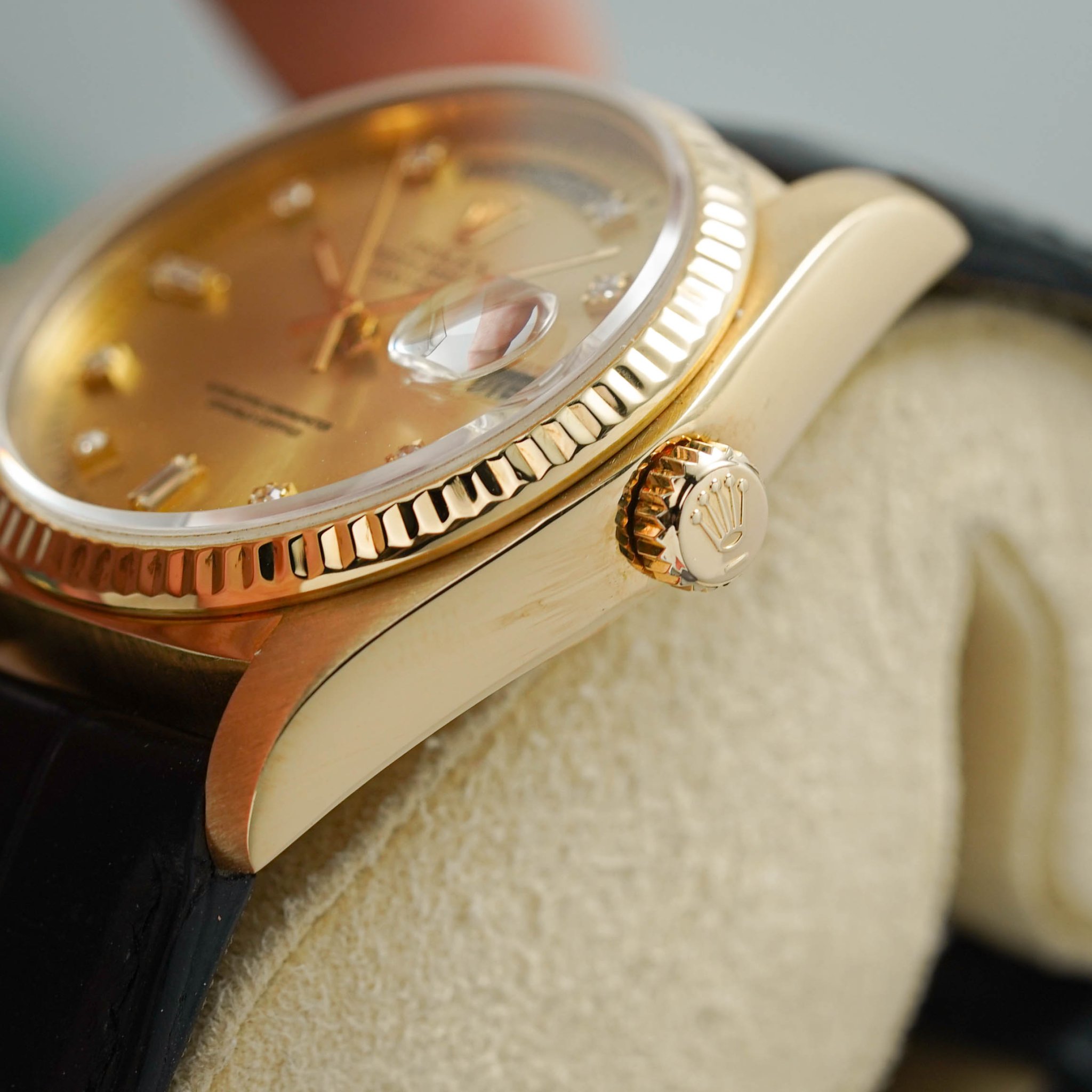 Đánh giá Rolex 5 số 18038 vàng đúc 18k, mặt tia vàng cọc kim zin