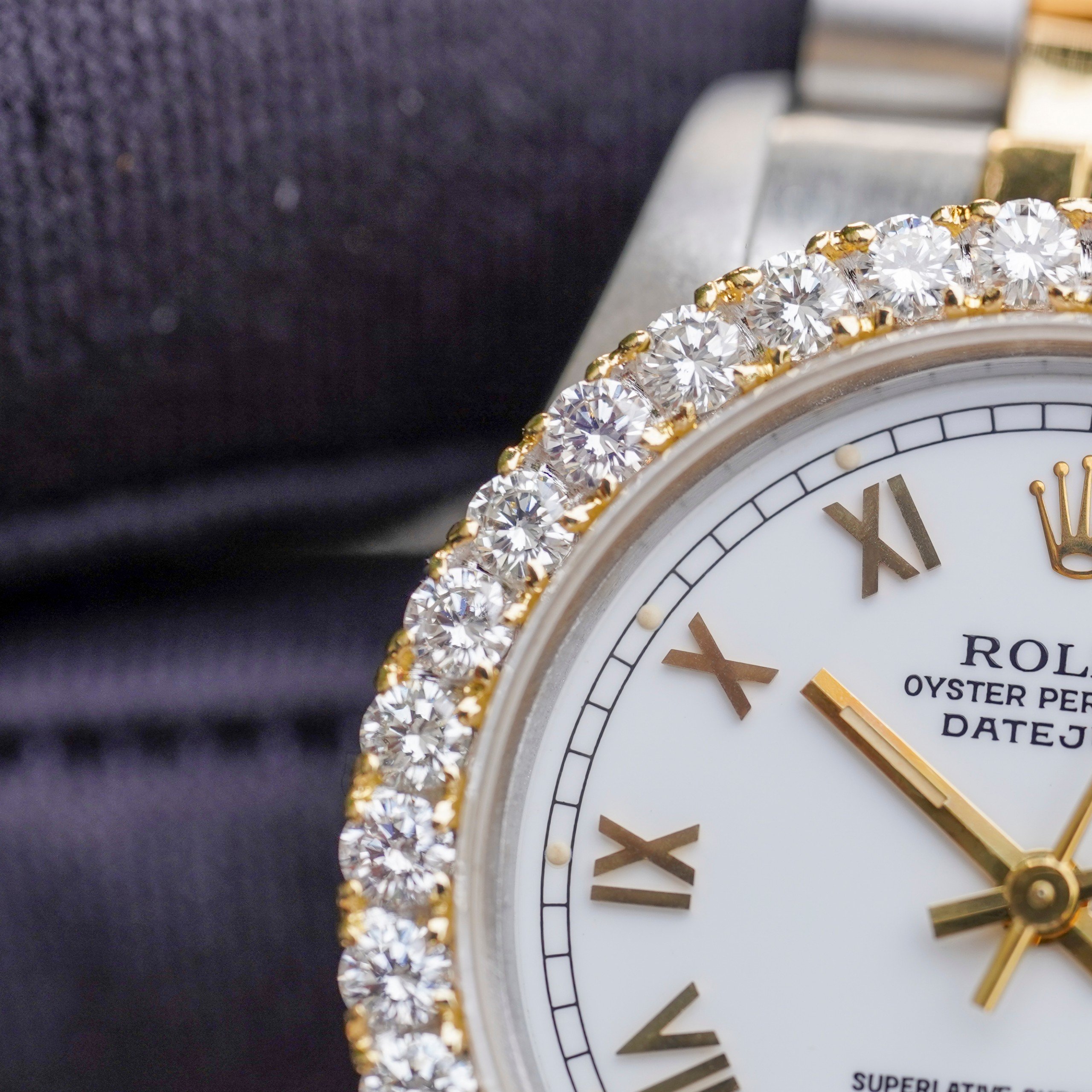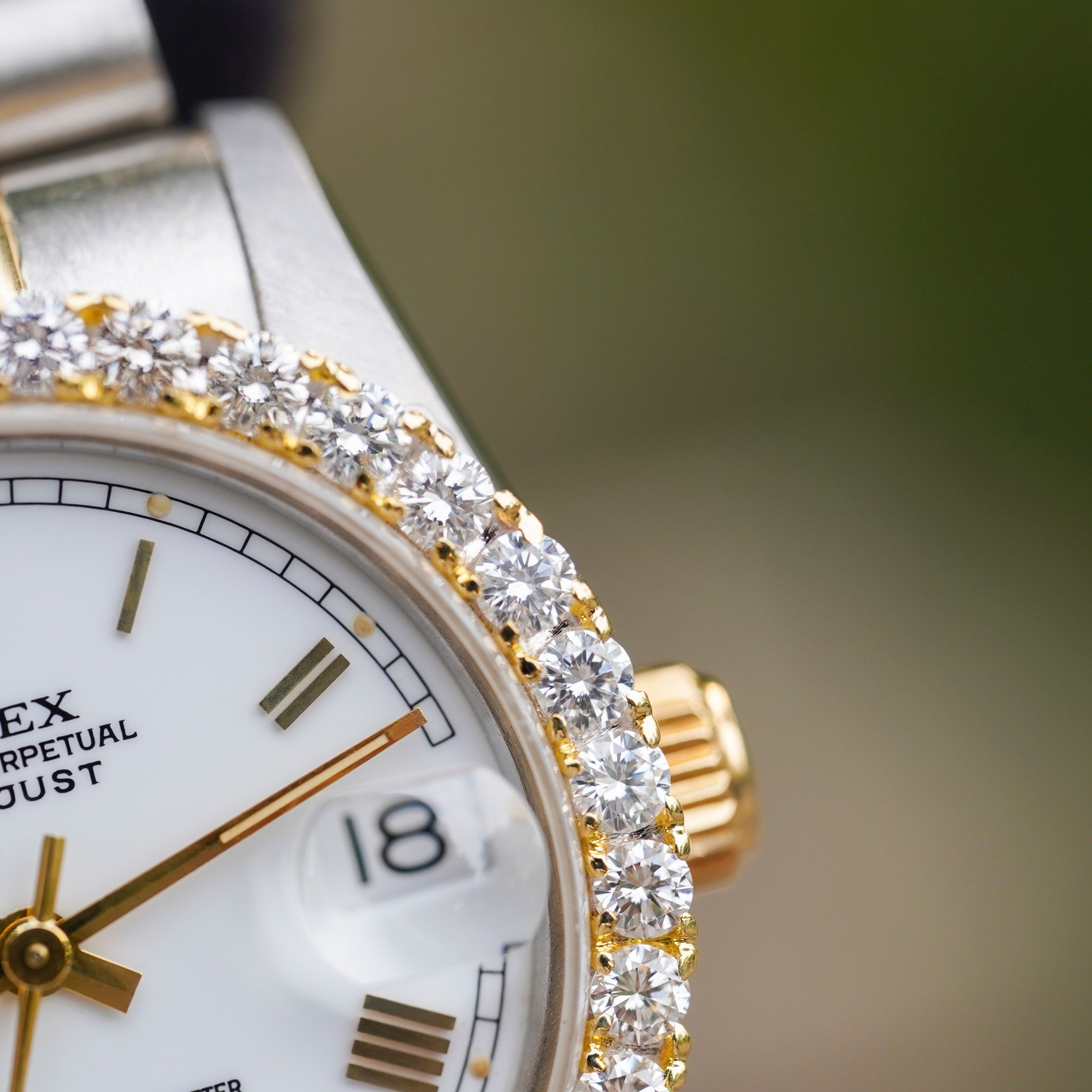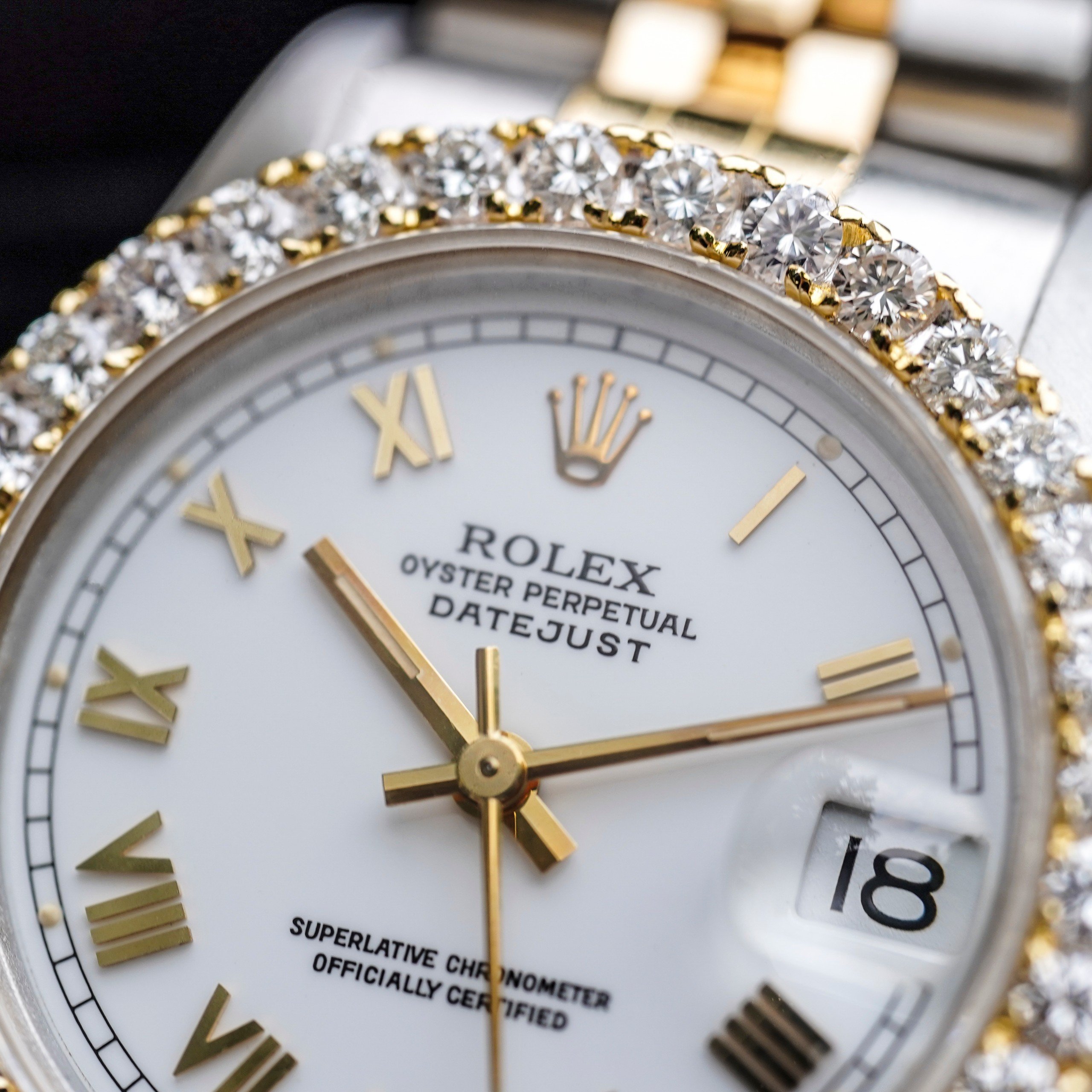 – Mặt đồng hồ: DateJust Mặt cọc số la mã, lịch ngày góc 3 giờ