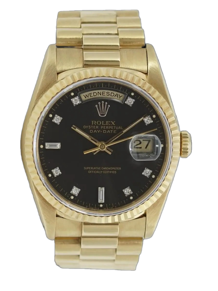 Thông số kỹ thuật đồng hồ Rolex Day-Date 36 18238 Mặt Số Đen Nạm Kim Cương