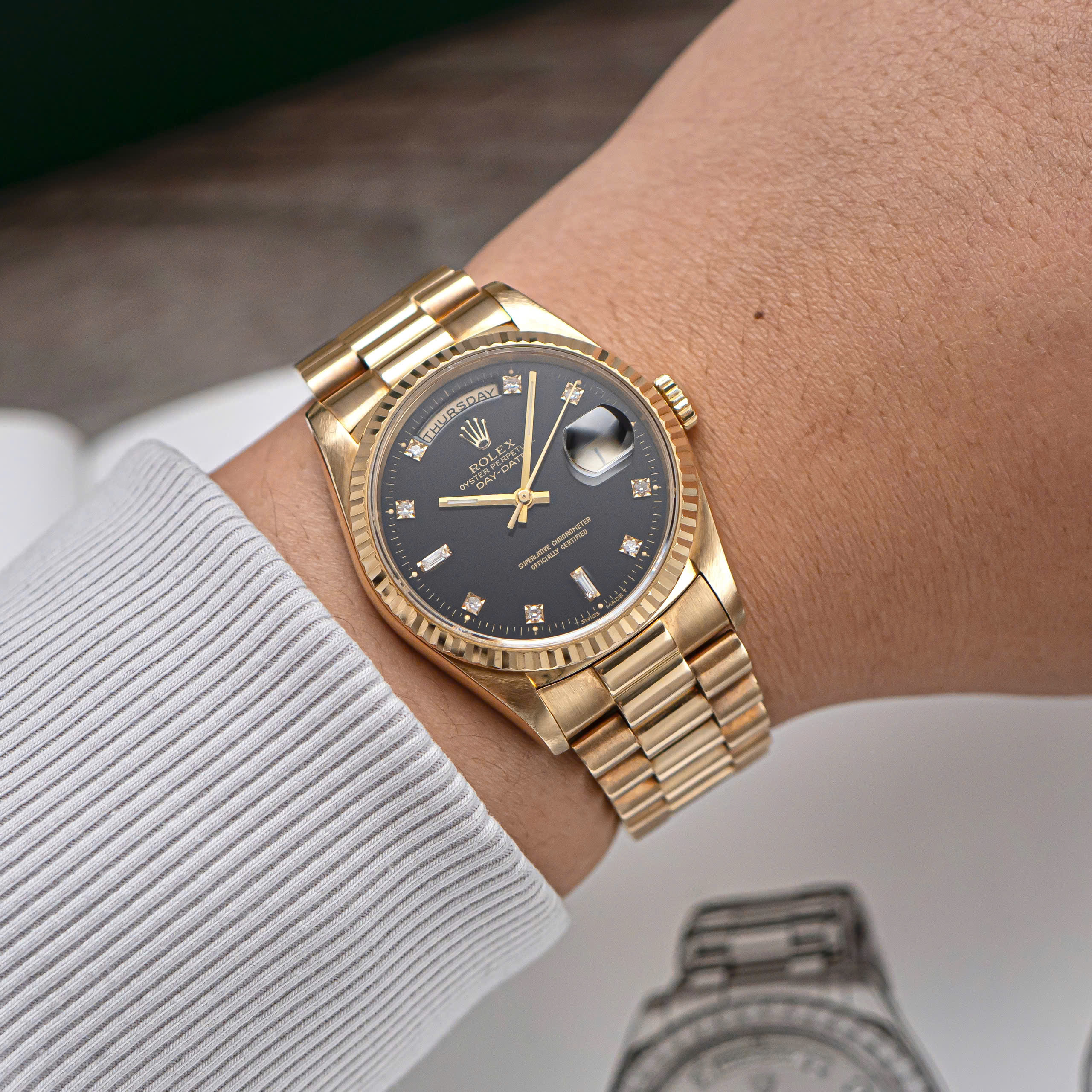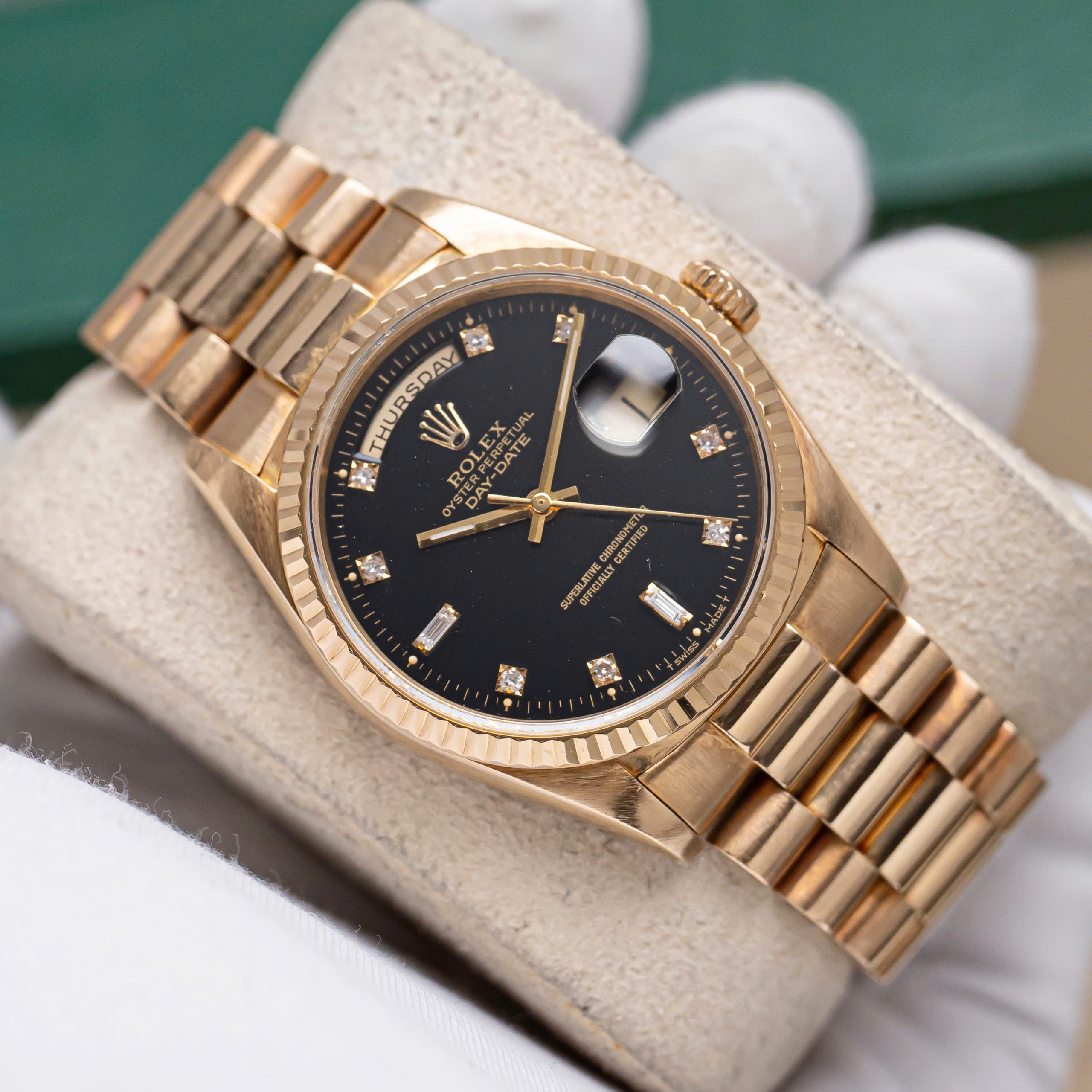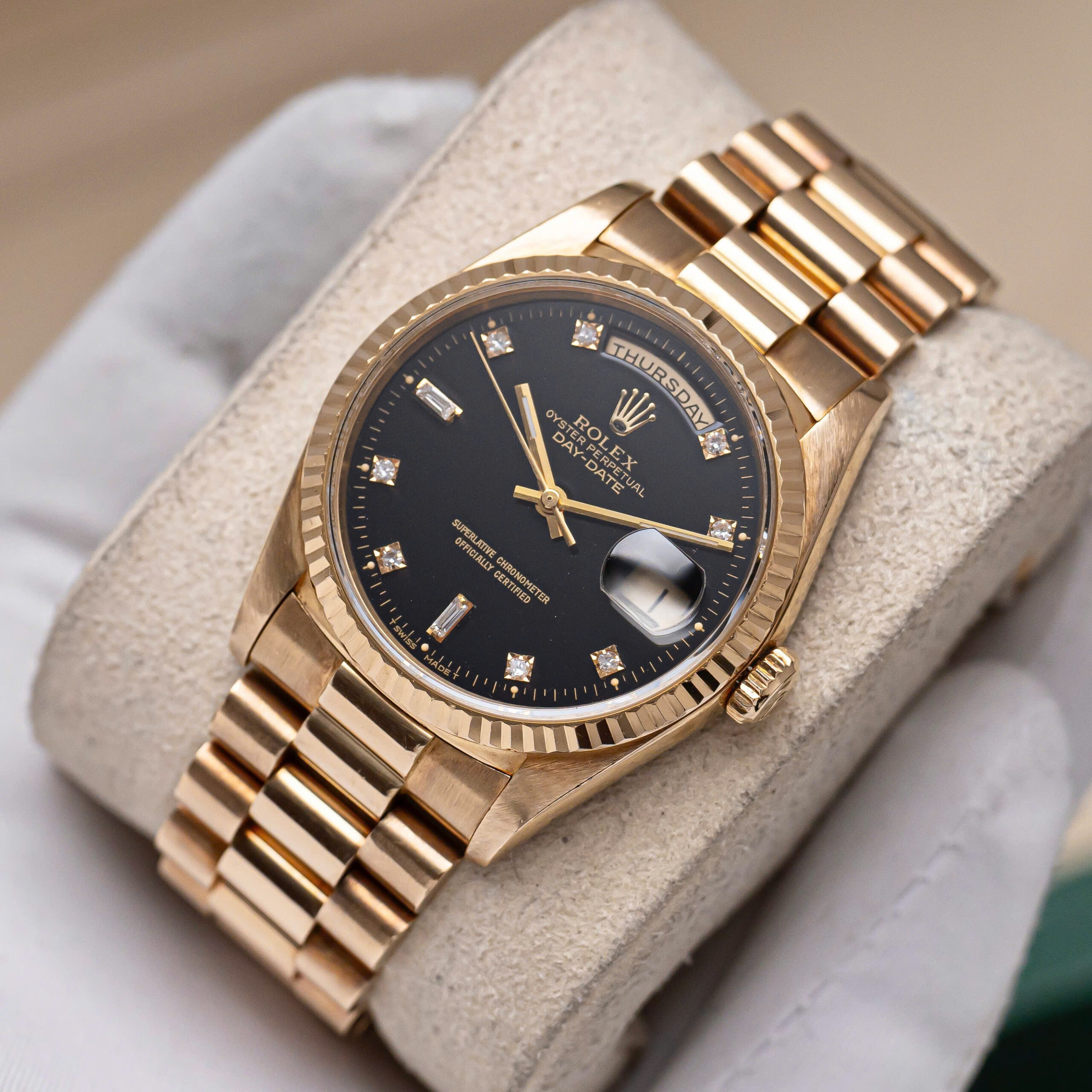 Đánh giá Rolex Day-Date 36 18238 Mặt Số Đen Nạm Kim Cương
