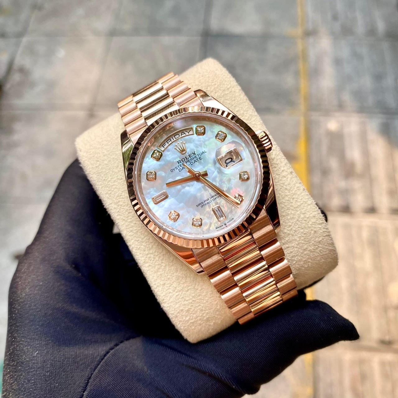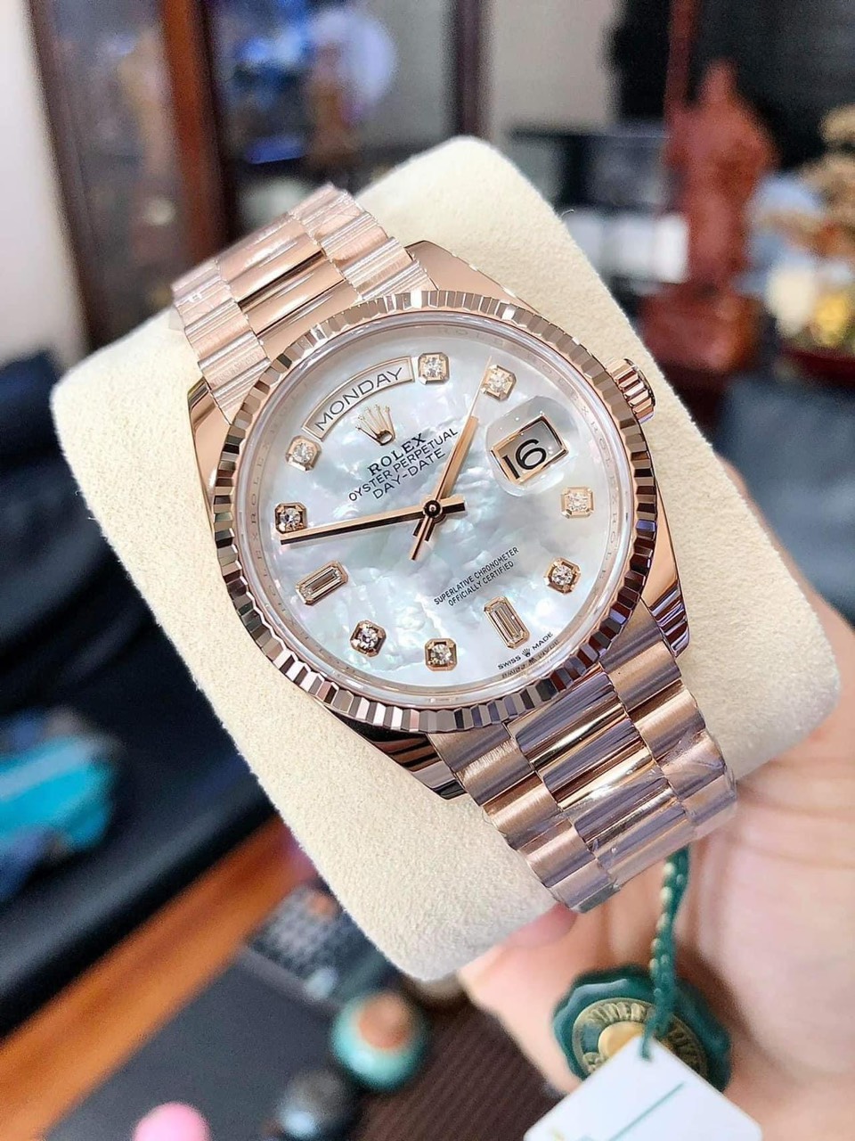 Đánh giá Rolex Everose Gold Day-Date 36mm 128235 -0029 Mop